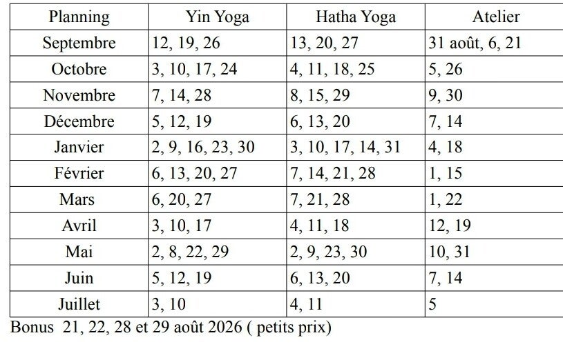 - 18h à 19h : Yin Yoga en présentiel et en visio